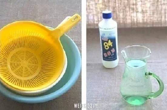 ▌將84消毒液和清水,以1:200的比例兌在一起,將需要“換膚”的塑料制品放入,浸泡兩個(gè)小時(shí)。再用清水反復(fù)沖洗干凈就可以了,效果好又不會(huì)產(chǎn)生任何腐蝕作用,浸泡過塑料框的水還可以倒入馬桶中,還能起到清潔馬桶的作用。