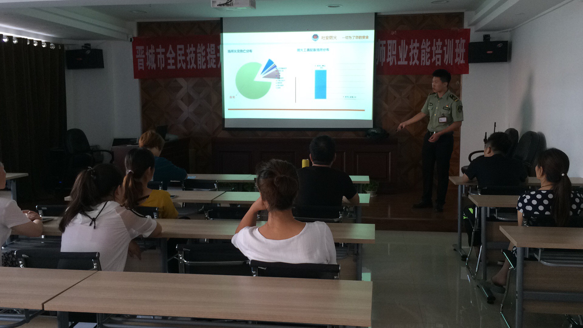 1、課堂上,教官通過強烈震撼的火災圖片和視頻以及生動的案例,讓員工詳細了解了火災的危害。