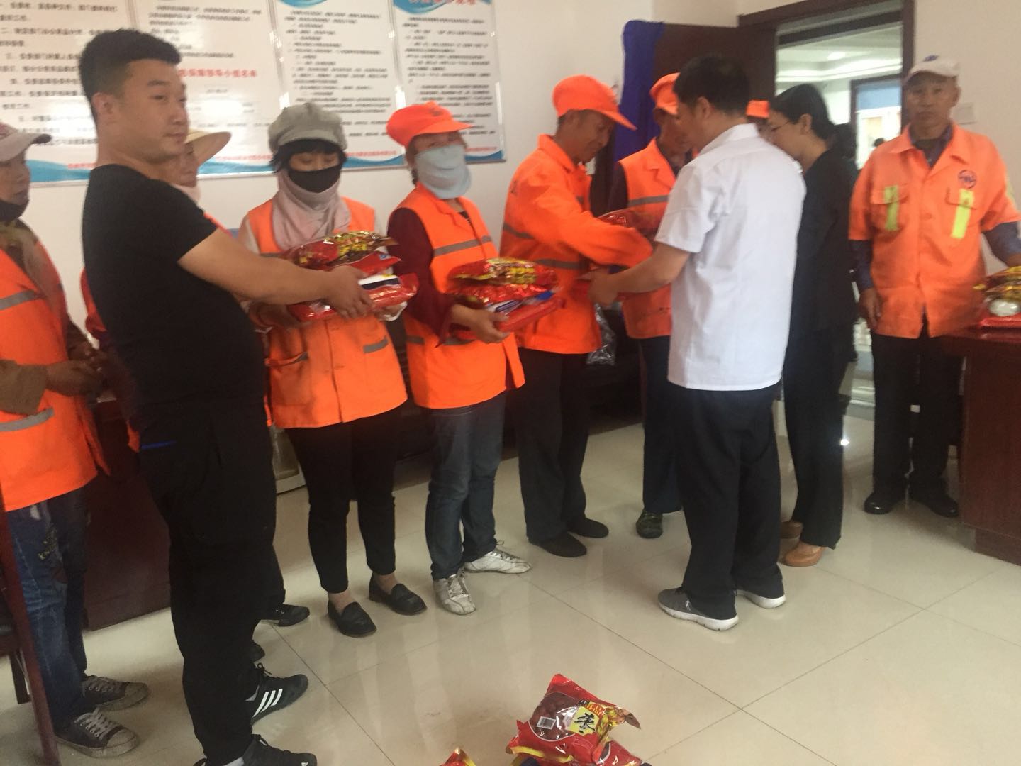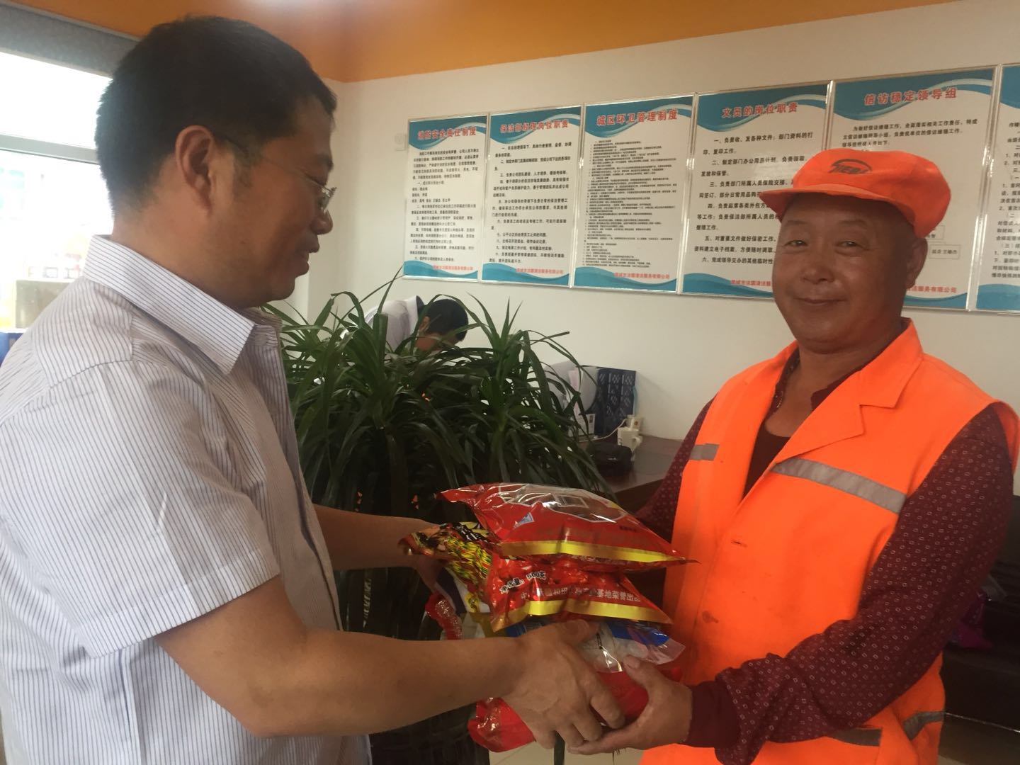 端午節(jié)來(lái)臨之際,為弘揚(yáng)傳統(tǒng)文化,我公司按照傳統(tǒng)習(xí)俗為環(huán)衛(wèi)工準(zhǔn)備了節(jié)日禮品。濃濃棕香,綿綿情長(zhǎng)。6月5日下午,在一年一度的端午佳節(jié)來(lái)臨之際,一袋袋香香的糯米、大大的紅棗、白糖、冰糖飽含著公司關(guān)愛(ài)和祝福的端陽(yáng)節(jié)福利由公司領(lǐng)導(dǎo)親自發(fā)放到為美化城區(qū)大街小巷作出默默奉獻(xiàn)的公司環(huán)衛(wèi)工人手中。