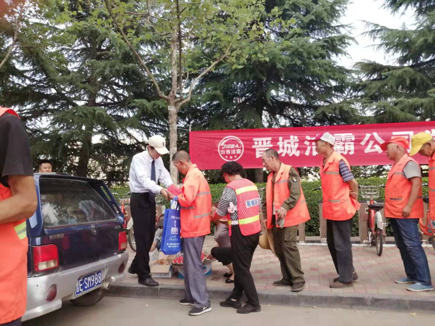 “大家辛苦了!”工會(huì)崔主席面對(duì)站在對(duì)面的滿臉汗水的環(huán)衛(wèi)員工深深一鞠躬,向高溫下奮戰(zhàn)在一線的環(huán)衛(wèi)員工們表示感謝。崔主席說,大家從事的環(huán)衛(wèi)工作雖苦、臟、累,但是大家心靈美,創(chuàng)建全國文明城市有咱的功勞,這是咱們潔霸的榮耀!他叮囑隨行的保潔部主管,在炎熱的夏季要時(shí)刻關(guān)心一線的員工,多傾聽員工的心聲,積極為他們做好后勤保障工作。他囑咐環(huán)衛(wèi)員工們,在高溫下作業(yè)要做好防暑降溫工作,確保自身健康安全。工作中要積極配合主管,共同把工作干好。