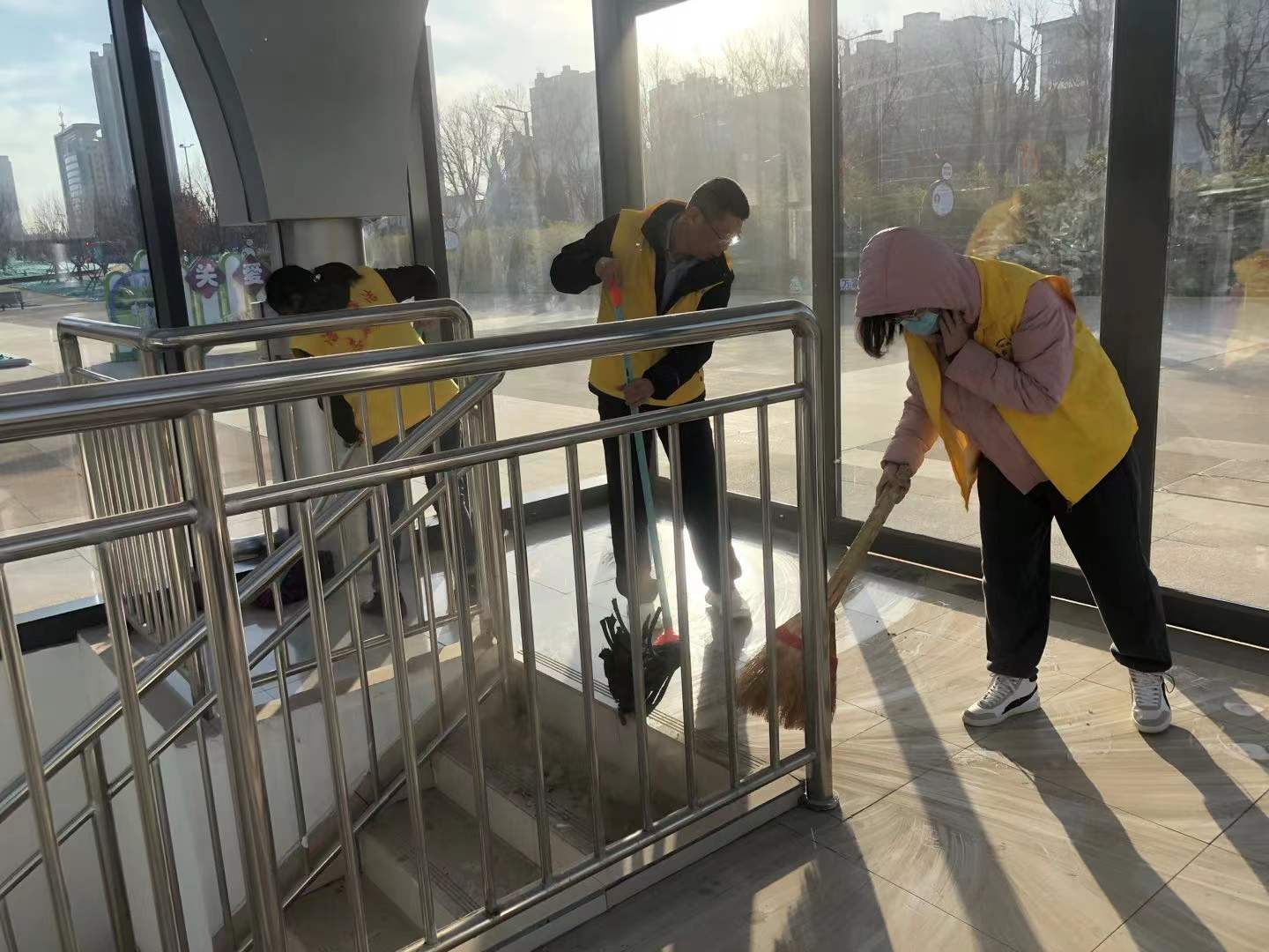 12月20日——22日,潔霸志愿者走進金鳳凰廣場和西街泰森社區(qū),開展衛(wèi)生清潔志愿服務活動。活動中,他們身穿黃色馬甲,手拿笤帚、拖布、夾子等清理工具,有的清掃地面;有的拖洗樓梯;有的擦洗欄桿;有的撿拾煙頭、紙片;有的規(guī)范車輛擺放,以實際行動參與到文明創(chuàng)建行動中來,全力支持我市創(chuàng)文迎檢工作,爭做創(chuàng)文的宣傳者、踐行者、守護者。