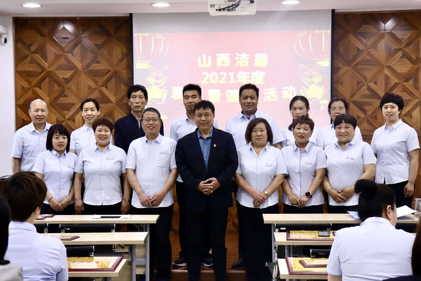 會上,副總經(jīng)理史志霞宣讀了《晉城市潔霸清潔服務(wù)有限公司關(guān)于表彰先進集體和先進個人的決定》,隨后為2021年度工作中成績突出的12家先進集體和110名員工進行頒獎。