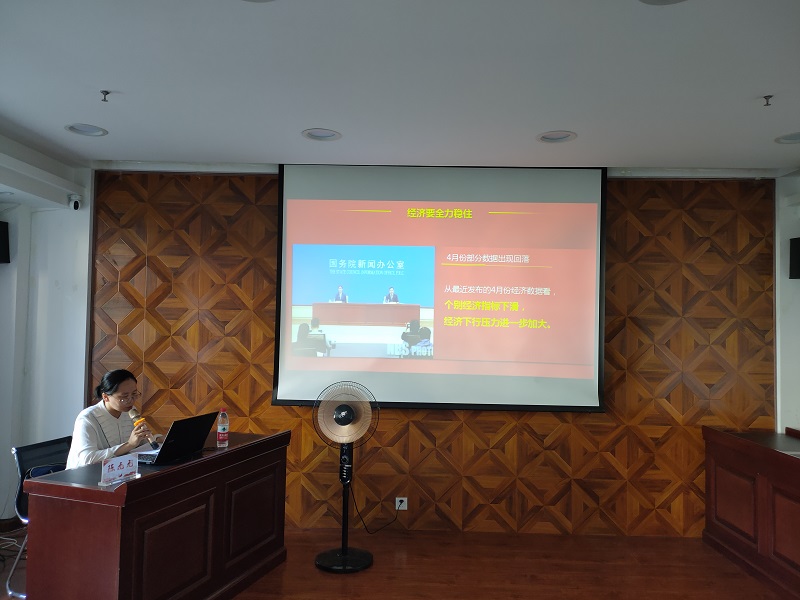 報告會上,陳元元主任從百年變局和世紀疫情相互交織,經(jīng)濟全球化遭遇逆流,大國博弈日趨激烈,世界進入新的動蕩變革期講起,從落實“人民至上、生命至上”的理念,堅持“外防輸入、內(nèi)防反彈”總策略和“動態(tài)清零”總方針不動搖,疫情要堅決防住;實施擴大內(nèi)需戰(zhàn)略,促消費保障和改善民生,著力通過穩(wěn)定市場主體穩(wěn)增長、促就業(yè),經(jīng)濟要全力穩(wěn)。挥行Ч芸刂攸c風險,守住不發(fā)生系統(tǒng)性風險的底線,發(fā)展要確保安安全等三方面做了深入的宣講。