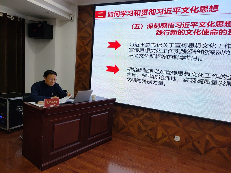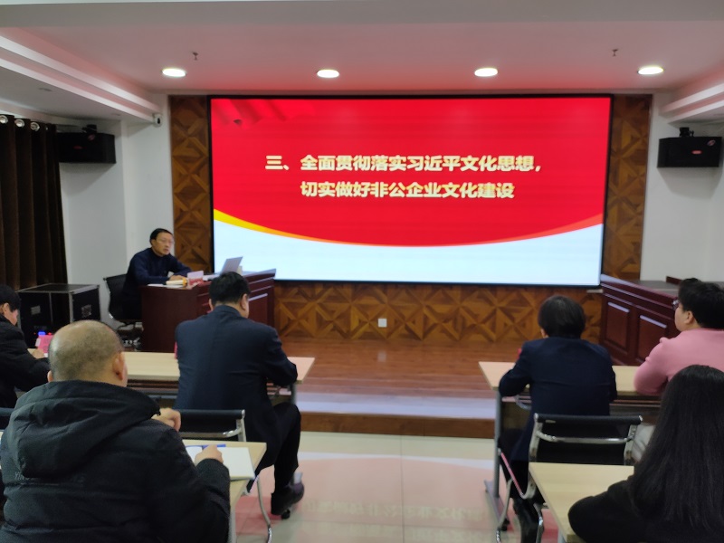 郝天順從習近平總書記對宣傳思想文化工作作出的重要指示談起,從“如何認識和理解習近平文化思想 ”“如何學習和貫徹習近平文化思想”“全面貫徹落實習近平文化思想,切實做好非公企業(yè)文化建設”三個方面進行了深刻闡述,指出習近平文化思想既有文化理論觀點上的創(chuàng)新和突破,又有文化工作布局上的部署要求,明體達用、體用貫通,明確了新時代文化建設的路線圖和任務書,在我國社會主義文化建設中展現(xiàn)出了強大偉力,為做好新時代新征程宣傳思想文化工作、擔負起新的文化使命提供了強大思想武器和科學行動指南,并結合非公企業(yè)實際,要求要緊緊圍繞學習貫徹習近平文化思想,圍繞貫徹黨的二十大關于文化建設的戰(zhàn)略部署,強化黨建引領作用,帶動企業(yè)文化發(fā)展,將文化建設作為企業(yè)戰(zhàn)略,不斷創(chuàng)新文化理念,將企業(yè)文化實體化、制度化,促進企業(yè)文化升華,推動各項工作落地見效。