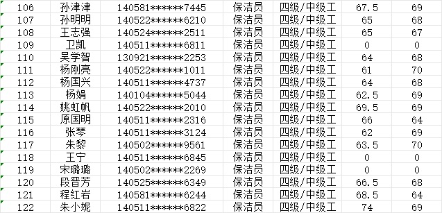 晉城市潔霸清潔服務(wù)股份有限公司職業(yè)技能等級認定中心現(xiàn)將2024年1月20日認定人員成績公示如下: