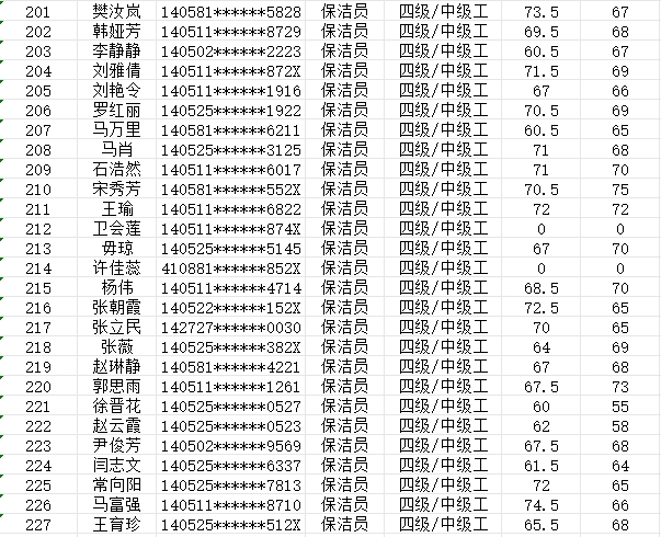 晉城市潔霸清潔服務(wù)股份有限公司職業(yè)技能等級認(rèn)定中心現(xiàn)將2024年2月4日認(rèn)定人員成績公示如下: