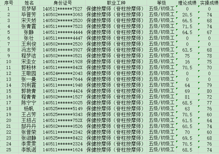 2024年5月24日第2批保健按摩師初級(jí)認(rèn)定人員成績(jī)公示